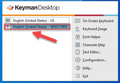 Keyman is now available and ready. Open an application where you would like to type in SENĆOŦEN such as Microsoft Word and then follow the steps below.