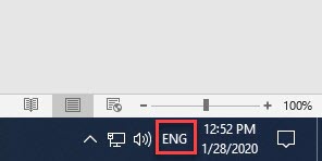 The SENĆOŦEN icon will display when you are typing the SENĆOŦEN language. You can switch between languages by clicking on the icon. On school desktops the other language you will see is ENG